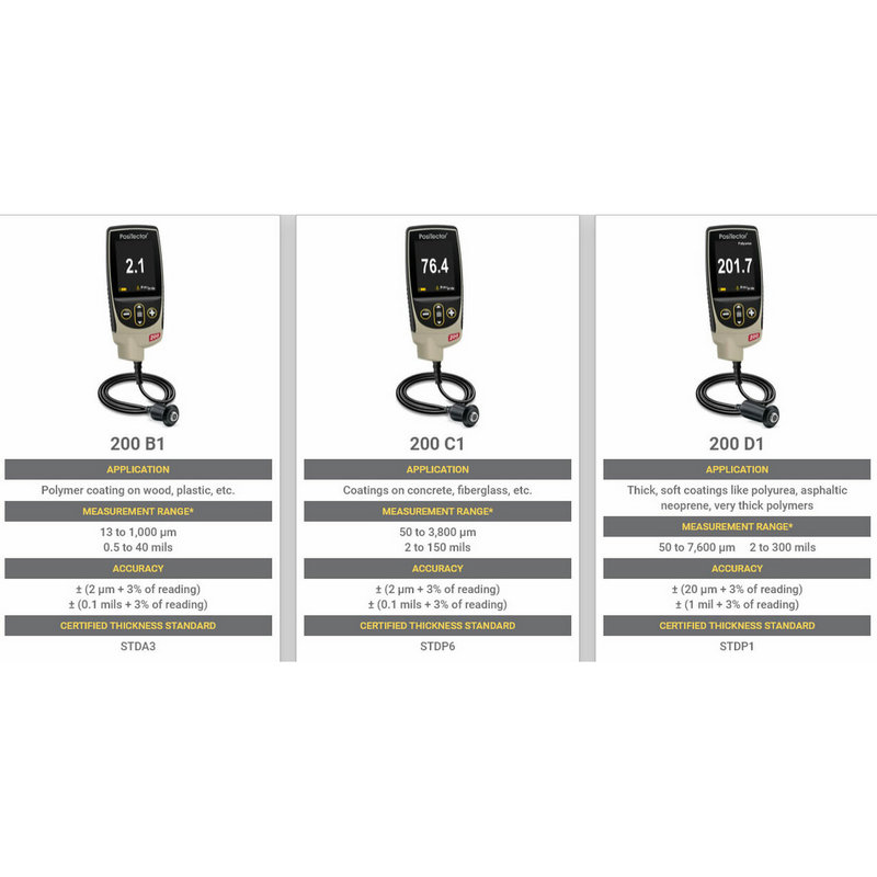 PosiTector 200 je univerzalni merač na tržištu pomoću koga možemo meriti debljinu na svim podlogama: drvo, staklo, polimeri, beton… Metoda merenja je ultrazvučna, bez razaranja prevalke, gde ultrasonična sonda emituje zvuk visoke frekfencije koji prolazi kroz materijal razičitih gustina i odbija nazad.Koristi se za merenje debljine epoksidnih podova kao i merenje debljine svih premaza na drvenim površinama.