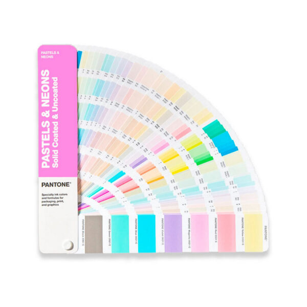 Color fan with 154 chromatically arranged PANTONE pastel and 56 neon colors, printed on coated and uncoated paper in one fan deck, inclusive formulas for mixing colors from the basic colors. The current edition of 2022 has a new cover page, the content of the fan has remained the same.
