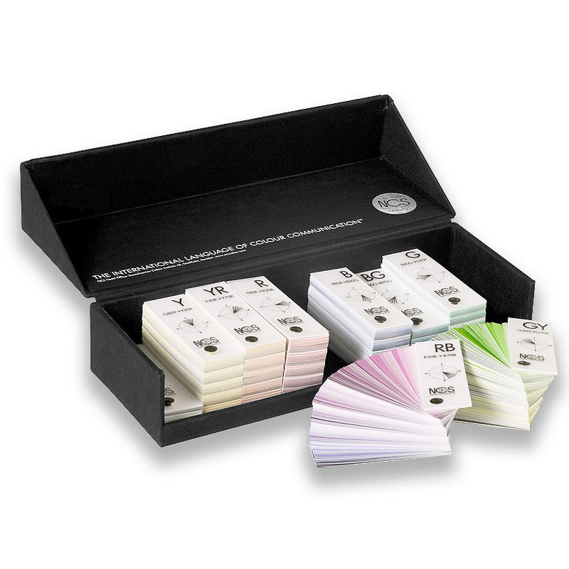 Each of the 2050 NCS color samples can be fanned out, isolated from colors around and can be placed against different surfaces. The NCS Block is an excellent aid for taking stock of and identifying colors on different materials.