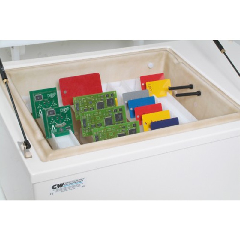 CW Tester kondenzacije simulira štetne efekte spoljašnje vlage, kondenzirajući toplu vodu direktno na uzorke testa. Za nekoliko dana ili nedelja, CW tester može reprodukovati štetne uticaje zbog vlage koja se javlja tokom meseci ili godina na otvorenom prostoru. CW tester je brz i jednostavan, koristi 100% kondenzacionu vlagu kako bi simulirala i ubrzala oštećenja prouzrokovana kišom i rosom na metalima, bojama i organskim materijalima.